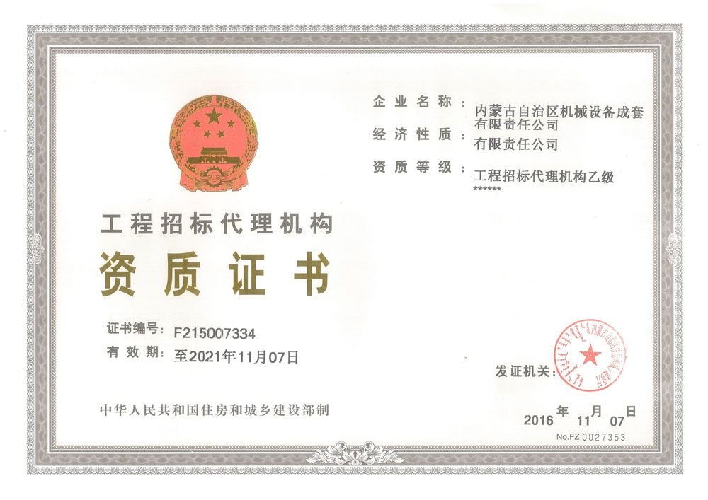 工程招標代理乙級資格證書